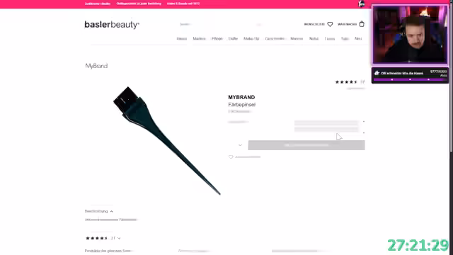 02:05:04Der Streamer bittet im Chat um Hilfe beim Thema Blondieren, da er und sein Freund die Haare von zwei Männern platinblond färben wollen. Er recherchiert in einem Basler Shop nach den passenden Produkten wie Blondierpulver, Cremeoxid und Entwicklerflüssigkeit in 6%iger Konzentration. Er erhält Tipps zur richtigen Mischungsverhältnisse, Einwirkzeit und Pflege nach dem Färben. Auch das Färben mit Directions-Haarfärbemitteln wird besprochen, wobei er verschiedene Farben auswählt und die Verwendung einer Spülung zur besseren Haltbarkeit der Farbe empfohlen wird.