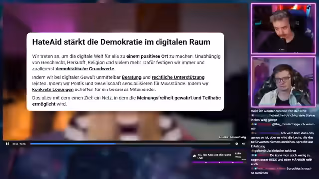 02:38:34Es wird über politische Entwicklungen gesprochen, insbesondere über die Verschärfung von Deepfake-Gesetzen nach dem Fall Colleen Fernandes. Kritik geübt an der CDU, insbesondere an Christoph Ploss, der Organisationen wie HateAid als linksaktivistisch bezeichnet und deren Förder streichen möchte. Hate Aid, eine Plattform für Opfer von Gewalt und Belästigung online, wird als moralisch essentiell verteidigt. Es wird befürchtet, dass solche Maßnahmen die Vorbereitung für einen weiteren NS-Staat darstellen.