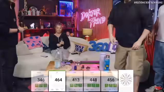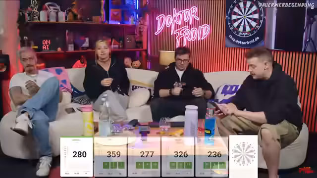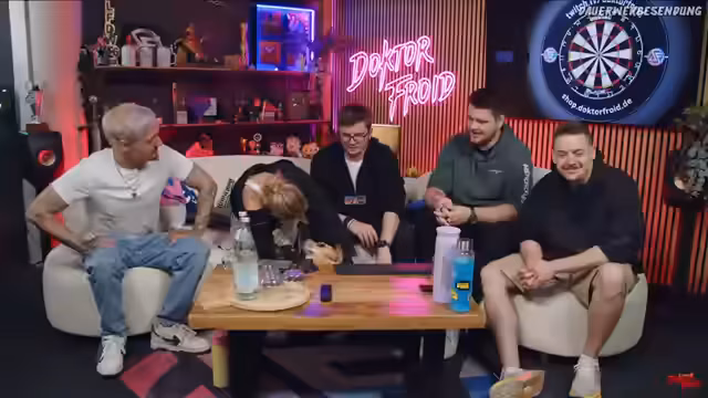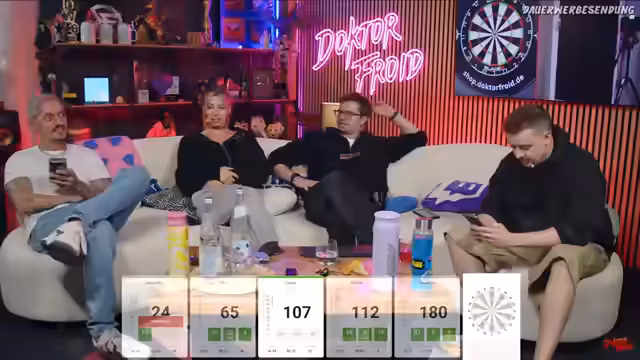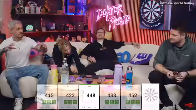 00:30:15Die Runde wird mit Punkten und technischen Korrekturen fortgesetzt. Es entstehen Spitznamen für die Teams wie 'Jenbaum' oder 'Girlie Girls'. Die Konkurrenz zur Influencer-Darts-WM ist allgegenwärtig, und es wird spekuliert, wer gewinnen könnte. Die Atmosphäre wird zunehmend unkonventionell, als die Teilnehmer über absurdartige Provokationen und potenzielle Regelverstöße wie das Zeigen von Körperteilen auf der WM diskutieren, was eine hitzige Debatte über Shitstorms und Stream-Richtlinien auslöst.