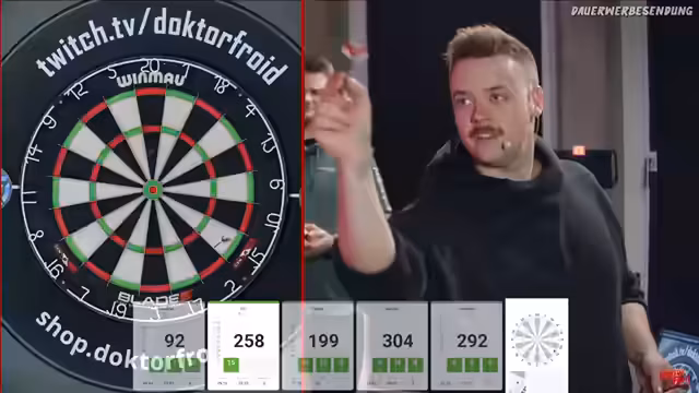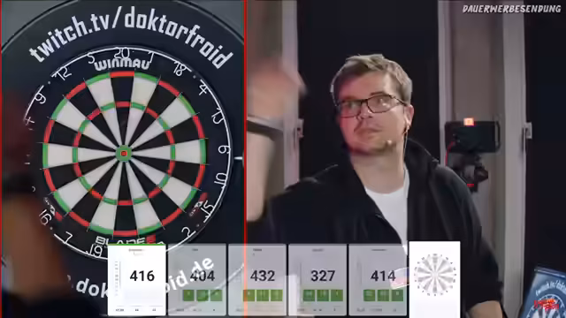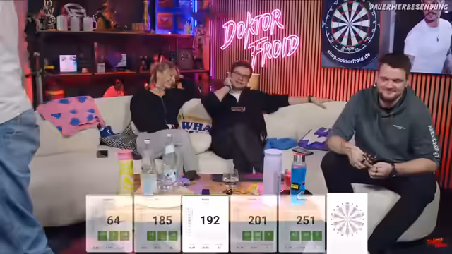 01:53:56Es wurde ein technisches Problem bei der Höhe des Dartboards entdeckt. TheStreamer stellten fest, dass die Scheibe nicht in der korrekten Höhe von 1,73 Metern (Mitte Bullseye) montiert war, was das Training beeinträchtigen konnte. Dies war besonders problematisch für den Streamer Paul, der 2,10 Meter groß ist, da die übliche Montage für kleinere Personen ausgelegt ist. Die Situation erforderte eine genaue Überprüfung der Anleitung, um sicherzustellen, dass das Board nach den offiziellen Regeln aufgehängt war und die Übung effektiv war.