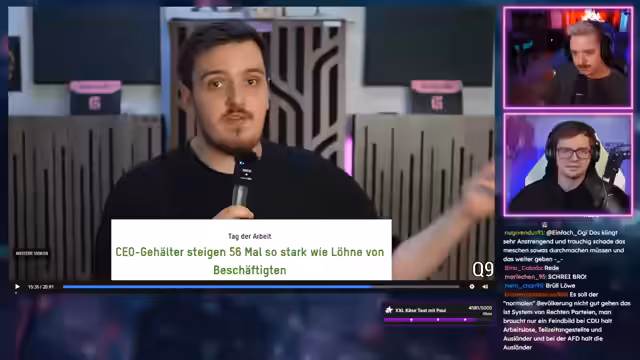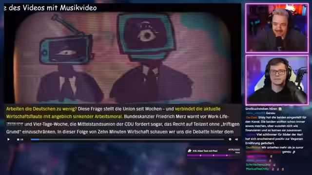 02:13:36Es wird die Debatte über die angebliche Faulheit der Deutschen im Zuge des schwachen Wirtschaftswachstums thematisiert. Streamer analysieren, dass die Forderungen nach mehr Arbeit eine Lenkungsstrategie sind, um von strukturellen Problemen der Wirtschaft abzulenken. Statistiken über Arbeitszeiten werden dabei als irreführend kritisiert, da sie die Realität von Paaren mit unterschiedlichen Arbeitszeiten, Überstunden und unbezahlter Care-Arbeit nicht abbilden. Die Behauptung, mehr Arbeitsstunden würden automatisch zu mehr Wohlstand führen, wird als Teil eines umstrittenen Narratifs entlarvt.