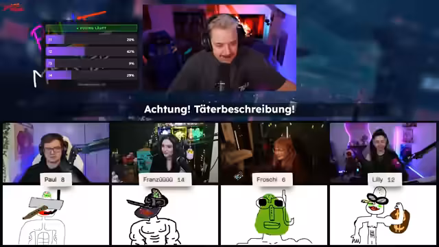 01:15:10Der Stream startet mit der Auswertung des Votings für die vorherige Zeichenaufgabe. Das Voting zwischen Franzi, Lilly und Paul endet knapp, mit Franzi als Sieger mit vier Punkten und Paul mit drei Punkmen. Damit führt Franzi nun mit acht Punkten, Paul hat drei und Lilly zwei. Froschi, der nicht teilgenommen hat, wird auf den letzten Platz verwiesen. Der Streamer lobt die Leistungen und bittet die Zuschauer, für die nächste Runde zu stimmen.