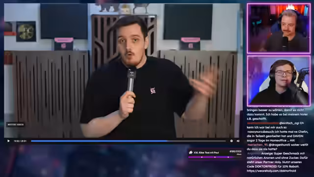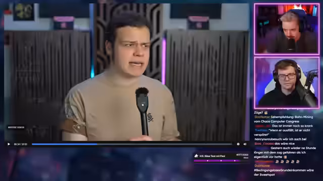02:12:15Die PRIME TIME SHOW startet offiziell mit einer Reaktion auf das Video 'Warum wir Deutschen angeblich zu faul sind' von Klarsprech. Der Streamer und seine Co-Moderatoren beginnen, das Video anzuschauen und kommentieren es live. Während des Streams gibt es technische Probleme, Franzi verlässt kurz den Chat und es wird ein Raid von einem anderen Kanal angekündigt. Der Streamer unterhält sich über aktuelle Themen wie die Söder-Tochter.
