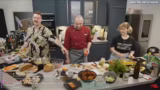 01:52:54Die fertigen Buletten werden in Rapskernöl angebraten, wobei auf die richtige Größe für eine Bento Box geachtet wird. Gleichzeitig wird ein Kartoffelsalat aus den Pellkartoffeln und einer selbstgekochten Gemüsebrühe hergestellt. Die finale Zusammenstellung der Bento Box erfolgt mit allen Komponenten: den Buletten, dem Kartoffelsalat, dem deutschen Sushi, den gebratenen Pfifferlingen und dekorierten Brotschnitten. Das fertige Produkt als Ganzes wird als sehr lecker, vollmundig und erfolgreich bewertet.