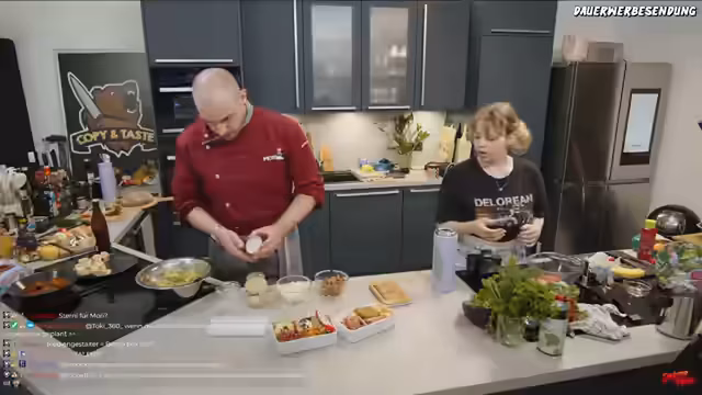 01:22:26Zu Beginn der Kochphase werden verschiedene Öle für das Anbraten der Bulette in Betracht gezogen, darunter Rapskernöl, Olivenöl und Leinöl. Letzteres wird aufgrund seiner Gesundheitseigenschaften zwar als giga gesund eingestuft, ist aber nicht ideal zum Anbraten. Schließlich wird Rapskernöl als die beste deutsche Alternative ausgewählt. Parallel dazu wird über mögliche Füllungen für die Bento Box gesprochen, wie zum Beispiel Mini-Croissants, Sonntagsbrötchen oder Scheiben von Brotschrippen, um japanisches Sushi durch deutsche Varianten zu ersetzen.