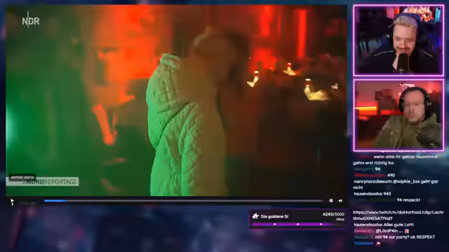 02:49:32Nach dem technischen Problem wechseln sie zu einer NDR-Dokumentation mit dem Titel 'All-Inclusive: Alt werden in Hamburg'. Der Streamer und Marco reagieren auf den Film, der sich mit dem Verein 'All-Inclusive' beschäftigt. Ehrenamtliche organisieren kostenfreie Events für Menschen über 60. Der Fokus liegt auf einer 94-jährigen Dame namens Lotti, die bei einem Geburtstagsständchen auf der Reeperbahn begeistert ist und später ihr erstes Smartphone lernt zu bedienen.