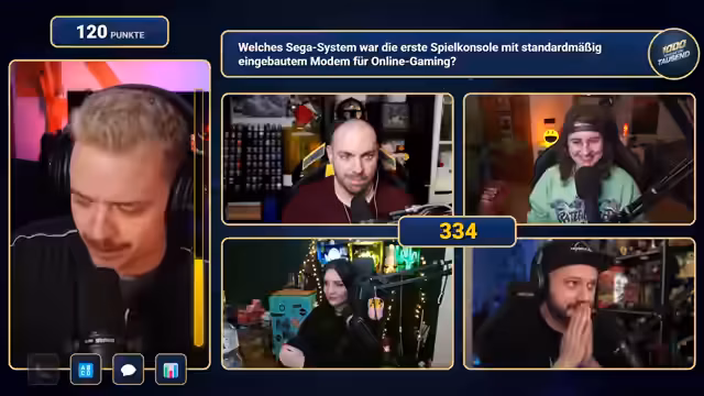 01:17:58Eine Frage nach der ersten Sega-Konsole mit integriertem Online-Gaming wird mit 'Sega Dreamcast' richtig beantwortet. Streamer erwähnen den Flop der Konsole und ihre Innovationen. Anschließend wird der Zweck des 'Turbo-Knopfs' an PCs der 90er Jahre diskutiert. Dabei wird erläutert, dass der Knopf, entgegen der Erwartung, die Taktrate verringerte, um alter Software die korrekte Laufzeit zu gewährleisten. Mori wird für die richtige Erklärung als Legende bezeichnet.