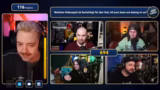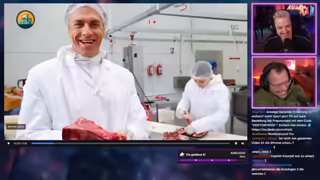 02:35:38Die Show wechselt das Format und bereitet ein Reaktionsvideo vor. Marco wird technisch in das Bild eingefügt und sein Mikro justiert. Es werden die Grundregeln für das Reaktionsformat besprochen: Pause drücken, wenn man etwas sagen möchte, und danach wieder Play. Ein technischer Fehler beim Stream führt zu einem Abbruch, als sie feststellen, dass das übertragene Video überwiegend von einer künstlichen Intelligenz generiert und nicht authentisch ist.