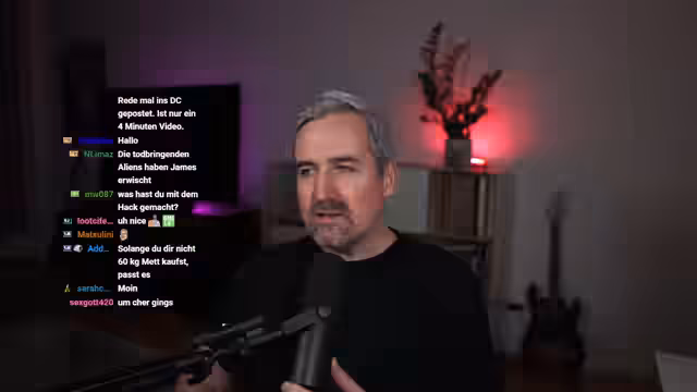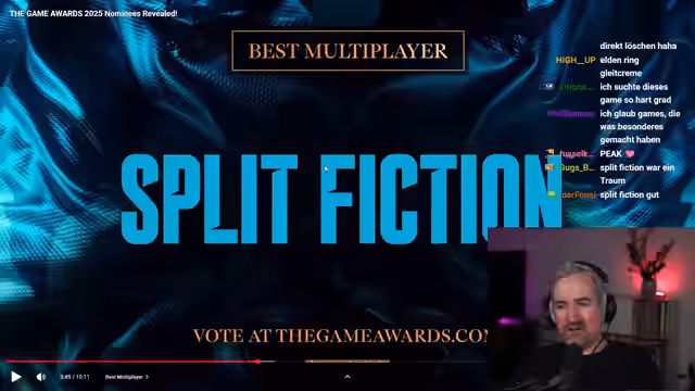 00:19:28Der Streamer wird von einem unerwarteten Raid des verifizierten ARD-Accounts überrascht, was ihn kurzzeitig überfordert, da er gerade in Jogginghose und mit 'puffigem' Licht streamt, während er zuvor nach einem sauberen Glas suchte und stattdessen einen Becher benutzen musste. Er spielt humorvoll mit der Situation und inszeniert einen fiktiven Dialog, in dem die ARD ihn auffordert, eine professionelle Anmoderation zu wiederholen. Er macht Witze über die GEZ-Gebühren, die er gerade überwiesen hat, und entscheidet sich für die 'linke' Option, die Witze zu machen. Danach widmet er sich den Game Awards 2025 und erklärt, dass er sich das Video mit den Nominierungen ansehen möchte. Er ist besonders gespannt auf die Kategorie, in der 'Claire Obscure Expedition 33' nominiert ist, da er dieses Spiel in seinem Let's Play als eines der besten Spiele seines Lebens bezeichnet hat und hofft, dass es viele Auszeichnungen gewinnt. Er erwähnt, dass er am 11. Dezember die Game Awards live streamen wird und sich darauf freut, mit den Zuschauern mitzufiebern.