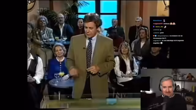 00:32:27Ein weiteres zentrales Thema der Reaction ist die starke Nostalgie und der Vergleich zur heutigen Zeit. Der Streamer bewundert die Begeisterungsfähigkeit des Publikums der 90er-Jahre und die einfache, unkomplizierte Art der Sendung im Vergleich zum heutigen, technisch komplexen und von Social Media geprägten Content. Er erwähnt die Aufregung, damals im Fernsehen zu sein, und kritisiert humorvoll den Alkoholkonsum der Moderatoren und des Publikums in der alten Sendung.