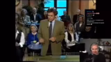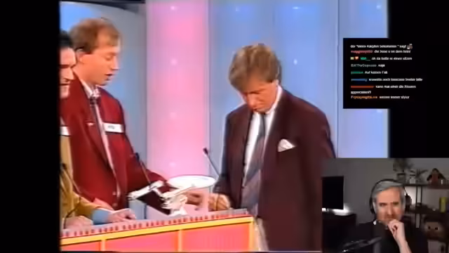 01:09:15Der Streamer schaltet zu alten Aufnahmen der Show 'Ruckzuck', einem Quiz aus den 90er-Jahren. Er kommentiert die übertriebenen Gesten und die lauten Antworten der Kandidaten mit Humor. Dabei wird das Studio-Design, die Kleidung und das Gesamterscheinungsbild der Epoche kritisch und nostalgisch betrachtet, wobei er die damalige Ästhetik als 'creepy' und 'unheimlich' beschreibt, aber auch unterhaltsam findet.