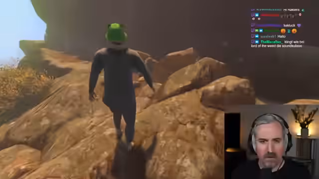 00:31:28Während der Erkundung stößt der Streamer auf eine rutschige Anhöhe, von der er mehrmals unabsichtlich abrutscht. Dies führt zu erheblichem Frust und einem Mix aus Humor und Ehrgeiz. Wiederholt sucht er nach Wegen nach oben, rutscht aber immer wieder zurück. Dieser Kampf gegen die Terrainmechanik wird zu einem Höhepunkt des Streams. Der Streamer beschreibt das Gefühl, vom Spiel herausgefordert zu werden, und nutzt diesen Frust als Motivation, die aktuelle Hürde zu überwinden, was er als gute Lebenslektion bezeichnet.