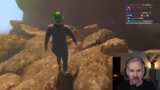 00:17:43Nach anfänglicher Unsicherheit mit der Steuerung beginnt der Streamer, sich in die ungewöhnliche Mechanik des Spiels einzuarbeiten. Die ersten Bewegungen sind holprig und humorvoll, aber bald entwickelt er eine gewisse Routine. Dabei fällt ihm ein grüner Hut ab, der zu einer persönlichen Trophäe und einem wiederkehrunning gag wird. Das ständige Holen und Verlieren des Hutes wird zu einem zentralen Motiv des Streams und demonstriert die alberne und zugleich fesselnde Natur des Spiels. Er stellt fest, dass das Spiel einem zwar albern vorkommt, aber man sich sehr schnell daran gewöhnt.