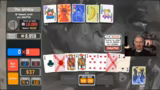 00:44:41Der Streamer befindet sich in einer vielversprechenden Runde, in der er den Gold Stake erreichen könnte. Nachdem er einen 'Full House' auf Level 7 boostet, fehlt ihm nur noch die letzte Hand, um die nötige Punktzahl von über 90.000 zu schaffen. Die Situation wird angespannt, da er sich mit 'Two-Pair' und Multiplikatoren behelfen muss. Trotz intensiver Bemühungen und einer fast geschafften 'Straight', gelingt es ihm nicht, die letzte Hand zu spielen, und der Run scheitert knapp am Ziel.