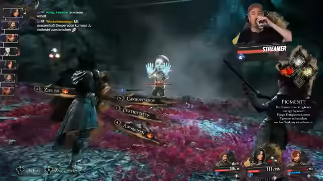 00:25:33Der Streamer beginnt die Session im Spiel 'Claire Obscure' und ist sichtlich motiviert. Er spielt eine Figur namens Gustav und muss einen Pantomime-Geisterboss bekämpfen. Er beschreibt seine Taktik, wobei er die Mechaniken wie Pigmente, Status-Effekte und Haltungen erklärt. Er ist gezwungen, die Haltung des Bosses zu brechen, und stößt dabei auf einige Schwierigkeiten, was ihn dazu führt, die Spielmechaniken auszuprobieren und Fehler zu machen.