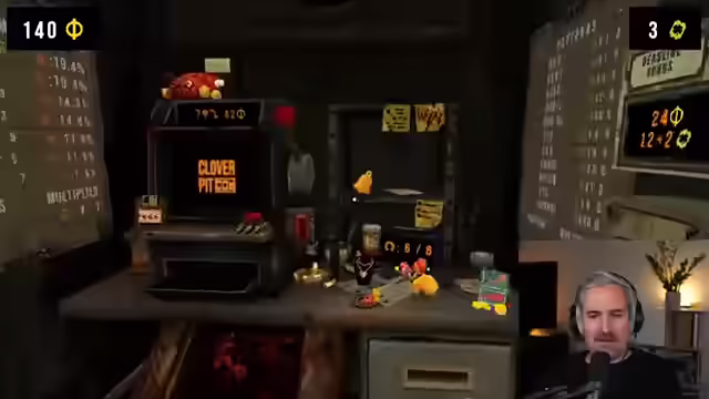 01:53:34Es wird ein Jackpot mit den Glocken geholt. Es wird ein New-Item gewonnen. Es wird festgestellt, dass man auf einen fetten Win angewiesen ist. Es wird überlegt, was man kaufen soll, um die Runde zu überleben. Es wird ein seltener Joker verkauft, um Platz zu schaffen. Es wird festgestellt, dass das dumm war. Es wird versucht, ein Item zu kaufen, das Siebenen manifestiert. Es wird festgestellt, dass Zitronen am meisten Geld geben. Es wird auf einen Knopf gedrückt, wenn viele Siebenen da sind. Es wird festgestellt, dass der Zug einen im Stich lässt. Es wird festgestellt, dass man tot ist. Es wird angekündigt, dass man das Spiel morgen Nachmittag noch einmal streamen wird.