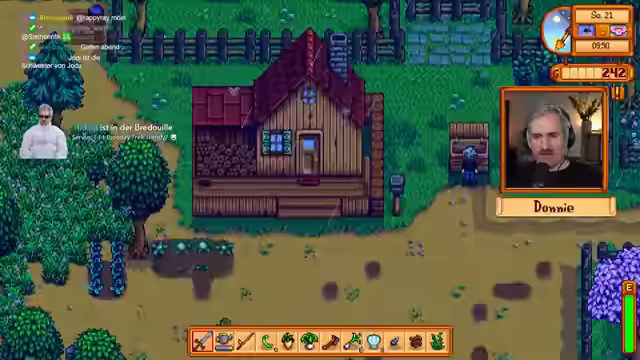 02:06:43Im Stardew Valley Stream interagiert der Streamer mit dem NPC Linus und diskutiert über dessen Rolle im Spiel. Es wird festgestellt, dass bestimmte Bereiche noch nicht zugänglich sind, was zu Überlegungen führt, welche Voraussetzungen erfüllt sein müssen, um diese zu erreichen. Anschließend wird Robin, die Schreinerin, besucht, um Bauoptionen zu prüfen. Dabei wird das Questing erwähnt, welches den Bau eines Hühnerstalls vorsieht. Der Streamer äußert sich überrascht über Robins Wissen bezüglich des Gemeinschaftszentrums und scherzt über mögliche Überwachung. Es wird die Möglichkeit einer Hausvergrößerung mit Küchenanbau in Betracht gezogen, jedoch als zu teuer verworfen. Stattdessen wird das Ziel formuliert, ein Hofgebäude zu errichten, wofür Ressourcen wie Holz, Stein und Kohle benötigt werden. Der Streamer reflektiert über die finanzielle Herausforderung, die 4000 benötigten Goldmünzen zu beschaffen und plant, durch das Sammeln und Verkaufen von Gegenständen dieses Ziel zu erreichen. Abschließend wird das Speichern des Spielstands angekündigt, um das formulierte Ziel, das Hofgebäude, im weiteren Spielverlauf zu verfolgen. Es wird kurz über die Möglichkeit eines Casinos im Spiel gescherzt.
