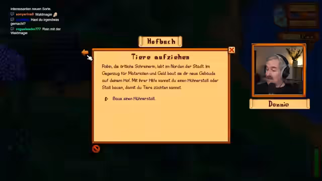 00:21:43Nach diversen Themenausflügen und Rants, etwa über das Oktoberfest, kündigt der Streamer endlich den Start von Stardew Valley an. Er ist im Frühling des ersten Jahres und befindet sich auf seinem Hof, den er Haselhof nennt. Nach anfänglicher Orientierung und einer kurzen Erklärung seiner bisherigen Spielereise, findet er den Weg in das Dorf und trifft dort auf die Bewohner, um neue Aufgaben zu erhalten.