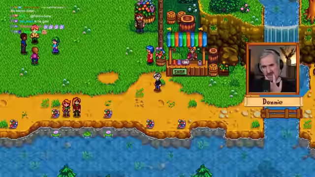 00:34:15Der Streamer muss noch einem Menschen Hallo sagen. Er trifft auf verschiedene Charaktere im Dorf, darunter Alex, den Quarterback, und Willie, der wie Robin Williams aussieht. Im Laden von Pierre trifft er auf Morris von der Yo-Yo-Corporation, der mit seinen günstigen Preisen eine Bedrohung für Pierres Geschäft darstellt. Der Streamer äußert sein Mitgefühl für Pierre, sucht aber eigentlich nur Blumenkohl. Er stellt fest, dass er die falsche Taste drückt und sein Schwert zieht. Er besucht Carolines Kammer, findet aber keinen Blumenkohl. Er stellt fest, dass er zu viele Quests gleichzeitig aktiviert hat und sich verloren fühlt. Er beschließt, schlafen zu gehen, um am nächsten Tag wieder Geld zu haben.