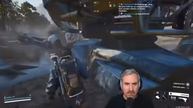00:15:44Während des Spiels erläutert der Streamer verschiedene Spielmechaniken. Er stellt fest, dass er die Funktion der Sicherheitstasche, in der wichtige Gegenstände wie Baupläne auch nach einem Tod behalten werden, bisher nicht verstanden hat. Er konzentriert sich darauf, Missionen zu erfüllen und gezielt nach bestimmten Loot-Objekten wie Ferro-Waffen oder seltene Pilze zu suchen, anstatt nur zufällig Beutegebiete zu plündern. Der Ton des Spiels fällt sporadisch aus, was ihn verwirrt.