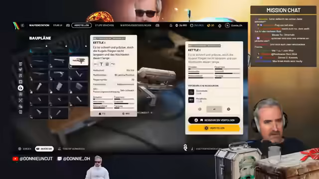00:05:03Der Streamer erkundet die Spielwelt und stellt fest, dass er sich noch als Noob fühlt, was die Herstellung von Gegenständen angeht. Er hat Schwierigkeiten, sich im Menü zurechtzufinden und beschwert sich über die geringe Sichtbarkeit bestimmter Menüpunkte. Er stellt Fragen zu Skills und Loot-Management und sucht nach Tipps aus dem Chat. Er bemerkt, dass sein Lager schnell voll ist und er nicht weiß, was er mit dem überschüssigen Loot machen soll - verkaufen, recyceln oder aufbewahren. Der Streamer ist offen für Ratschläge der Zuschauer.