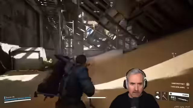 01:27:06Während des Streams kommen Fragen zu den genutzten Plattformen. Der Streamer erwähnt, dass er auf PlayStation 5 spielt, weil er sich am wohlsten damit fühlt und nicht den Anspruch hat, mit Maus und Tastatur optimal zu performen. Er beschäftigt sich mit verschiedenen Gegnern wie Rollviechern und findet heraus, dass sie oft nicht sofort erkennen, wenn sie entdeckt wurden. Ein Problem ist die begrenzte Inventargröße, was besonders beim Looten zu Herausforderungen führt. Der Streamer erkundet den Containerlager-Bereich und macht sich Notizen über das Verhalten der Gegner und die besten Taktiken, um zu überleben.