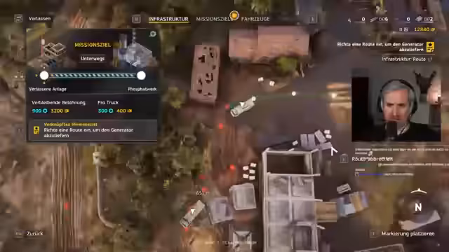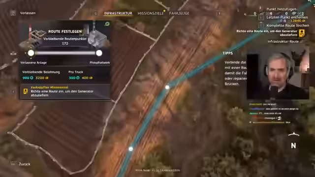 01:14:44Für die nächste Aufgabe müssen sie eine Route für Lieferfahrzeuge planen, um Kranteile zu einem Werk zu transportieren. Dabei lernen sie das Routenplanungs-Tool kennen und senden die Fahrzeuge los. Kurz darauf gerät eines der Fahrzeuge in Not und stecken bleibt, was die Streamer zu spontanen Rettungsmaßnahmen zwingt. Ihre unkoordinierten Bemühungen führen jedoch dazu, dass sie selbst in Schwierigkeiten geraten und feststecken.