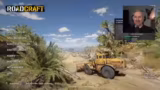 00:20:40Der Streamer startet das neue Spiel Roadcraft, ein Simulator, bei dem man Baustellen aufräumt und Infrastruktur schützt. Nach einem Tutorial wählt er ein orange lackiertes Fahrzeug und eine Mission, bei der er die Uferbefestigung eines Phosphatwerks verstärken muss. Er erkundet die Fahrzeugsteuerung, erklärt Allradantrieb und Differenzialsperre und betont die Wichtigkeit der Gangschaltung im Gelände.