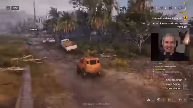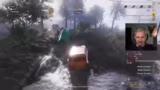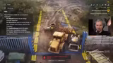 01:36:41Die nächste Mission erfordert die Bergung eines Generators aus einer verlassenen Anlage. Die Streamer müssen sich dafür aufteilen und koordinieren. Einer der Streamer steckt mit seinem Fahrzeug in einer ungünstigen Position fest und wird vom anderen versucht zu retten. Nach mehreren gescheiterten Versuchen und einem chaotischen Einsatz der Winde gelingt es ihnen schliesslich, den Generator zu bergen und zur Garage zu bringen, was den Abschluss der Mission darstellt.