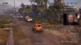 01:05:11Nachdem sie sich eine Orientierung verschafft haben, nehmen sie ihre erste Mission an. Das Ziel ist es, ein altes Tor eines Werks freizumachen. Sie wechseln von den Jeeps zu schweren Baggern, um den Schutt zu beseitigen. Es kommt zu organisatorischen Verwirrungen und die Streamer verstehen zunächst nicht, wie sie die Fahrzeuge steuern und welche Aktionen möglich sind. Letztendlich gelingt es ihnen, das Hindernis zu beseitigen.