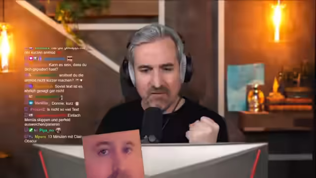 00:05:49Der Streamer begrüßt sein Publikum und erwähnt den Wechsel des Streaming-Standorts aufgrund der Gamescom. Er ist begeistert von der neuen Location, die ihm von einer kleineren Firma zur Verfügung gestellt wurde. Ein zentrales Element des Streams ist der Einsatz eines Greenscreens, um das Production Value zu steigern. Dies erforderte eine intensive Vorbereitung, darunter das Auftragen von Puder, was zu humorvollen und unangenehmen Reaktionen auf seinem Gesicht führte. Er erklärt, dass er sich unwohl dabei fühlte, das zu erwähnen, es aber für authentisch hält und hofft, dass sein Publikum den Verzicht auf Make-up als lustig empfindet. Die technische Anpassung des Chats, der vorher bei hoher Zuschauerzahl abgestürzt war, war ebenfalls eine Notwendigkeit für einen reibungslosen Ablauf.