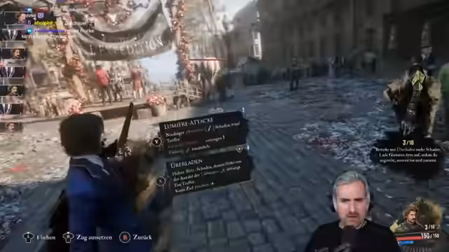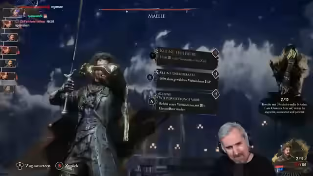 00:47:36Nach erfolgreichem Abschluss des Tutorials beginnt der erste richtige Kampf, der sich als einfacher herausstellt als erwartet. Der Streamer ist dennoch sichtlich bemüht, die neuen Mechaniken zu verstehen und zu verinnerlichen. Er stellt Fragen zur Benutzeroberfläche, insbesondere zu den Anzeigen für Lebenspunkte (HP), AP und Überladung, und versucht, die Logik hinter dem Kampfsystem zu entschlüsseln. Trotz der anfänglichen Verwirrung zeigt er Respekt für das Spiel und seine Komplexität. Parallel dazu wird die storyliche Handlung vorangetrieben: die Ankunft bei der Zeremonie von Sophie und die offenbar düstere Zukunft, die die Welt erwartet. Eine unerwartete Entwicklung ist die Fähigkeit, zwischen den Charakteren Gustav und Mael zu wechseln, was taktische Möglichkeiten eröffnet.