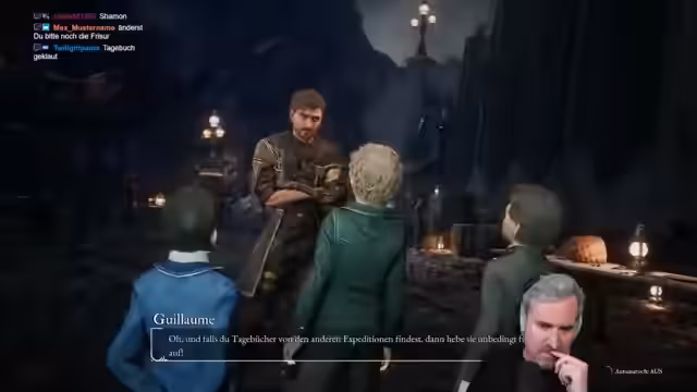 01:02:18Der Streamer entdeckt die Möglichkeit, die Perspektive zwischen Gustav und Mael zu wechseln und erforscht die Konsequenzen seiner Entscheidungen. Er stellt fest, dass die Dialoge sich je nach选择的 Charakter ändern, was die Story dynamischer gestaltet. Während er als Mael weitererzählt, kommen neue Charaktere wie Richard ins Spiel, dessen Verhalten der Streamer misstrauisch beobachtet. Er identifiziert sich stark mit der Beziehung zwischen Gustav und Mael und beginnt, sich emotional in die Geschichte einzubringen. Parallel dazu wird die Welt weiter aufgedeckt: das 'Gelöt', eine krankhafte Wucherung, und die 'Expedition', ein jährliches Ereignis, dessen Bedeutung noch unklar ist, aber mit dem Überleben der Bevölkerung verbunden zu sein scheint.