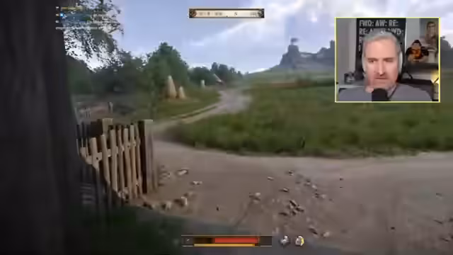 00:13:44Nach den technischen und persönlichen Einleitungen beginnt der Stream mit dem eigentlichen Gameplay von Kingdom Come Deliverance 2. Er befindet sich bei seiner Quest, zur Hochzeit zu gelangen, und muss den Einsiedler finden, um mehr über dessen angeblichen Pakt mit dem Teufel in Erfahrung zu bringen. Bei seiner Suche gerät er in ein feindliches Lager und muss sich zurechtfinden, wobei er die Komplexität und die teils umständliche Bedienung des Spiels kritisiert.