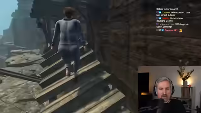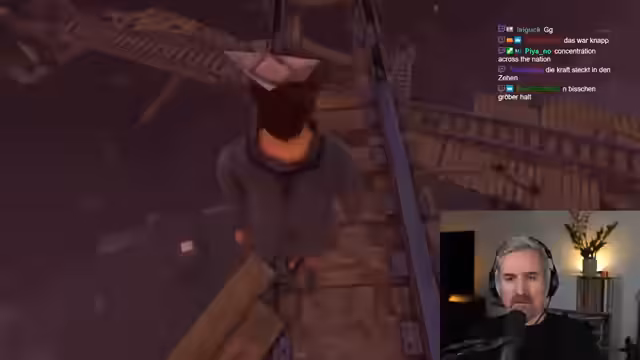 01:58:06Der Streamer befindet sich in einer neuen Gegend, einer Schlucht, die ihn an ein Zelda-Level erinnert, besonders an die Goronen-Level. Er wird von einem Raid von 'Gecklo' überrascht und begrüßt die neuen Zuschauer. Trotz des hohen Frustrationslevels und mehrerer Stürze bleibt er motiviert und betont, dass man immer wieder aufstehen muss, wenn man fällt. Er kämpft weiterhin mit präzisen Sprüngen und Balanceakten, die seine Arme und seinen Rücken belasten. Die anhaltenden Kopfschmerzen, die er auf seine Zahnentzündung zurückführt, machen ihm zu schaffen, aber er versucht, weiterzumachen, da das Spiel ihm Spaß macht. Er ist skeptisch gegenüber leuchtenden Geistern im Spiel, da er sie oft als 'Bait' empfindet. Er erreicht schließlich eine hohe Position, die er als 'Gipfel-Style' beschreibt, und hofft auf einen Speicherpunkt. Der Stream endet mit einer Cutscene, in der er auf einen Charakter namens Jim trifft, der stolz auf seine selbstgebauten Treppen ist. Jim warnt ihn vor dem 'Man-Breaker'-Pfad, der zu schwer sei. Der Streamer beschließt, den Stream zu beenden, um etwas zu essen und Wasser zu trinken, und hofft auf die Genesung seines Zahns über das Wochenende.