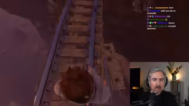 00:56:49Der Streamer mahnt sich selbst zur Geduld und Konzentration, um nicht wieder unvorsichtig zu werden und herunterzufallen. Er geht in einen „Concentration Mode“ und erwähnt dabei einige interne Memes der Community, wie „Ruhe bis Apfel“, „Matteo oder Donny fällt“ und „Madenmann“, die nur die Zuschauer verstehen, die schon länger dabei sind. Er erwähnt auch neuere Memes wie „Trust“ und „Bredouille“, sowie „Schweine 1“, das aus einem lustigen Tippfehler im Chat entstand. Er erinnert sich an „Raum ist blau, ich sag ciao“ als weiteres bekanntes Meme. Er muss sich auf einen kniffligen Abschnitt im Spiel konzentrieren, bei dem er einen Ausfallschritt machen muss, um nicht abzurutschen. Er erwähnt, dass die Serie „Claire“ bald weitergeht, worauf einige Zuschauer warten. Er versucht, einen Weg an einer Lore vorbei zu finden, um auf die andere Seite zu gelangen, und überlegt, wie er am besten die Wand entlanggehen kann, um sein Ziel zu erreichen. Trotz der Schwierigkeiten bleibt er motiviert und versucht, das Spiel zu meistern.