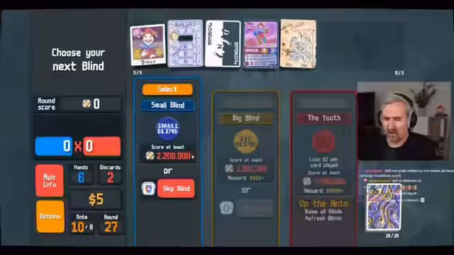 00:05:04Der Stream startet mit persönlichen Notizen des Streamers, der früh aufgewacht ist und seine Steuererklärung bereits um 6 Uhr begonnen hat. Nach einer kurzen Erholungspause wird der eigentliche Plan des Streams erläutert: ein Versuch, den letzten verbleibenden Goldstake-Deck, das sogenannte Nebula-Deck, in Ballatro freizuschalten. Er betont, dass es sich um ein leichtes Deck handelt und das Spielziel ist, diesen persönlichen Mount-Everest-Moment mit dem Publikum zu teilen.