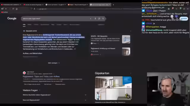 01:01:08Der Streamer schildert, wie er das Holzstück provisorisch auf die Konstruktion legte, was zufällig passte. Er gesteht ein, dass diese Methode nicht für schwere Gegenstände ausgelegt ist. Er berichtet von Glück bei der Installation, da er ohne Messgerät in der Nähe von Wasserleitungen gearbeitet hat, was potenziell gefährlich gewesen sei. Ein Kumpel habe sein Vorgehen kritisiert, aber es seien keine gravierenden Konsequenzen aufgetreten, was der Streamer als Glück bezeichnet.
