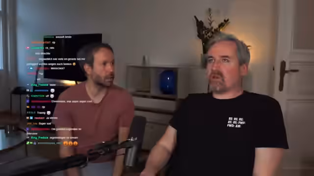 00:09:56Nachdem der Streamer den Aufwand für die Vorbereitung der kurzen Live-Session beschrieben hat, klingelt es und Nili kommt an. Be begrüßen sich und stoßen mit einem Bier an. Die technische Herausforderung der Kommunikation zwischen den beiden Sets wird zum zentralen Thema. Da die direkte Sprachübertragung nicht funktioniert, müssen sie einen Discord-Call aufbauen. Dies führt zu erheblichen Problemen mit Echo und doppelt hörbarem Audio, da der Ton aus dem OBS-Feed zusätzlich über Discord übertragen wird. Nach mehreren Versuchen und Fehlern gelingt es ihnen schließlich, die Verbindung stabil zu bekommen, um miteinander zu sprechen.