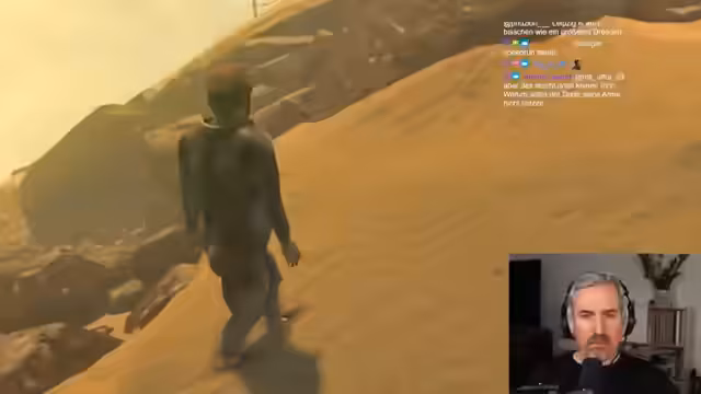 01:47:53Die positive Stimmung wandelt sich schnell zurück in Frustration, als der Streamer auf eine völlig neue, unübersichtliche Geländeformation stößt, die ihm das Fortkommen erheblich erschwert. Er rutscht auf sandigem Untergrund ständig bergab und muss sich ständig neu orientieren. Die Umgebung wird immer dunkler, was die Navigation zusätzlich erschwert. Der Streamer ist nun 'full tryhard', kämpft aber mit einer sinkenden Frust-Toleranz und sucht verzweifelt nach einem sicheren Punkt oder einer Abkürzung, um weiterzukommen.