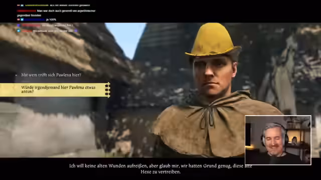 00:38:35Anstatt seine ursprüngliche Mission fortzusetzen, nimmt der Streamer eine neue Nebenquest an: 'Die verschwundenen Arbeiter'. Das Ziel ist es, die Arbeiter bei einer Mühle zu finden. Der Streamer muss Informationen sammeln und Personen im Dorf befragen. Der Queststart ist jedoch unklar und der Streamer wirkt überfordert, da das Spiel ihn nur unzureichend leitet und er sich zwischen verschiedenen Aufgaben und dem unzuverlässigen Chat ratlos fühlt.
