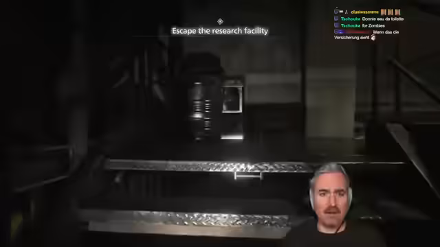00:09:03Die Streamerin setzt das Let's Play an der Stelle fort, an der sie in der letzten Session aufgehört hat. Sie befindet sich in einer Werkstatt, vor der ein Countdown abläuft und der Selbstzerstörungsmechanismus aktiviert wird. Sie muss sich aus dem Bereich retten und ger dabei in einen Kampf mit einem Zombie. Es kommt zu einem hektischen Austausch von Schüssen, während die Streamerin versucht, den Gegner zu besiegen und gleichzeitig ihre Gesundheit zu managen.