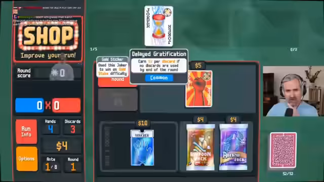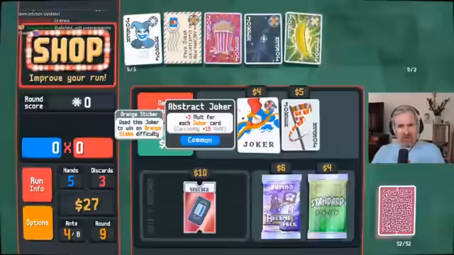 00:09:33Der Streamer geht auf den Chat ein und zeigt seine Sammlung an Joker, denen noch Goldsticker fehlen. Er gibt einen Einblick in seine Strategie, die darin besteht, einen spezifischen Joker zu tragen und dabei mit anderen Decks oder spezifischen Taktiken wie dem Anaglyph-Deck zu arbeiten. Er erklärt den Prozess des Goldsticker-Erhalts, der das Abschließen einer Runde auf dem schwierigsten Schwierigkeitsgrad "Gold Stake" mit dem jeweiligen Joker erfordert.