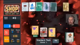 02:19:12Mit dem erhaltenen Red Seal wird der Run weiter optimiert. Der Streamer analysiert den Zustand seines Decks und stellt fest, dass er nun Kings auch discarden kann, da die Punkteausbeute stimmt. Gleichzeitig muss er sich mit vielen negativen Jokern herumschlagen. Er wünscht sich einen Invisible-Joker, den er aber nicht opfern will, und überlegt, ob er den Showman einsetzen soll. Die Stimmung ist angespannt, da das Spiel ihm nicht alle gewünschten Joker gönnt und er denkt, dass bald das Ende des Runs droht, wenn keine entscheidenden Verstärkungen wie Ectoplasm oder ein zusätzlicher Joker-Slot erscheinen.