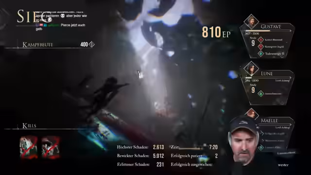 02:20:40Während eines Übungskampfes erleidet der Streamer einen Game-Over-Moment und die Figur Mael stirbt. Reagiert er darauf zunächst mit einem Ausdruck von Enttäuschung und macht sich selbst Vorwürfe, nicht optimal gespielt zu haben. Seine Versuche, den Kampf neu zu starten oder die Situation rückgängig zu machen, scheitern zunächst. Letztlich akzeptiert er den Verlust als Teil des Spiels und zeigt Lernbereitschaft, aus dieser Erfahrung für zukünftige Kämpfe zu ziehen, auch wenn die Frustration über den zeitlichen Verlust spürbar bleibt.