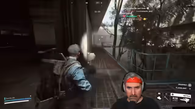 01:29:49Ein Hilferuf eines anderen Spielers führt zu einer gemeinsamen Aktion. Nach einer kurzen Diskussion und strategischen Absprache gelingt es beiden Spielern, ein gemeinsames Ziel zu erreichen, was der Streamer als großen Erfolg feiert. Die Stimmung ist euphorisch. Anschließend wird ein zweiter, schnellerer Raid ins Auge gefasst. Währenddessen taucht eine Leiche auf, was ein ungewöhnliches und verdächtiges Ereignis darstellt. Der Streamer nutzt die Gelegenheit zum looten und schafft es knapp einer drohenden Gefahr zu entkommen.