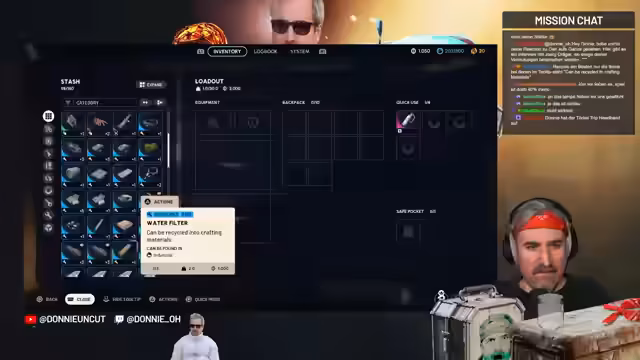 01:32:36Nach dem finalen Raid des Tages widmet sich der Streamer der Organisation seines Inventars. Er recycelt unnötige Gegenstände und spricht über die Herausforderungen, wichtige Items für Quests zu identifizieren, ohne sich auf externe Cheat Sheets zu verlassen. Er gibt an, bevorzugt die Mechaniken des Spiels selbst zu erkunden. Er blickt zudem in die Zukunft und plant für den nächsten Stream das Erlangen von mehr Platz im Lager, das Anschauen der Händler und die Jagd auf einen Hornet.