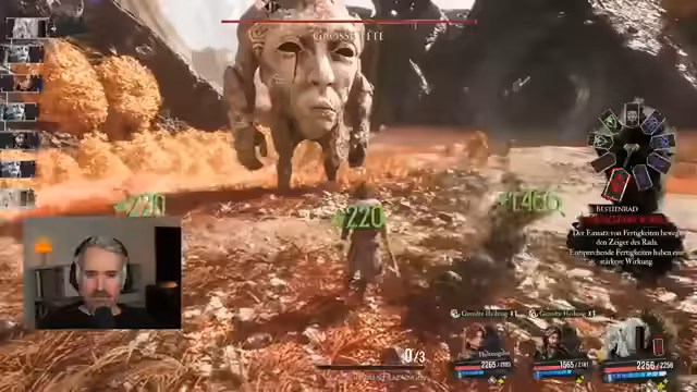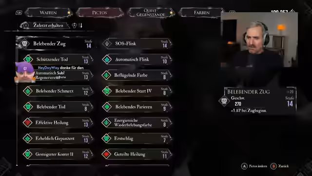 00:10:44Der Streamer erreicht einen anspruchsvollen Miniboss, den er als schwer zu parierend und nervig beschreibt. Er kämpft mit den Spielsystemen, insbesondere mit der Erkennung von Schwachstellen der Gegner und der Verwaltung der Synergien und 'Pikto'-Fähigkeiten. Trotz technischer Probleme mit dem Sound und der Kamera, die das Bild überlagern, versucht er, den Kampf mit vorhandenen Fähigkeiten wie 'Läuterung' und 'Perfekter Bruch' zu bestreiten.