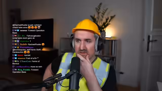00:00:00Der Stream beginnt mit dem Moderator, der sich nach der Abreise des Co-Moderators Jakob Kretzel über ein geschlossenes Unterfenster Gedanken macht. Der Fokus liegt auf dem bevorstehenden Roadcraft DLC und dem Wunsch nach entspanntem Gameplay. Nach einer kurzen Diskussion über die technische Funktionsweise von Twitch-Knotifikationen für Zuschauer, die wieder online gehen, bereitet der Streamer den Wechsel ins Spiel vor, während er parallel weiterhin durch eine TV-Dekorationsendung schaut.
