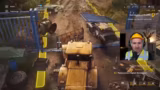 01:13:31Nach der Klärung des Spielinhalts konzentriert sich der Streamer wieder auf die Mission. Er wählt ein Ziel, das im Gegensatz zur letzten Partie mit Matteo war, und versucht, ein verschlossenes Tor zu öffnen, wobei er auf einen bekannten Bug stößt. Er beginnt, die Fahrzeugsteuerung, einschließlich der verschiedenen Modi für den Planierer, zu lernen, und nutzt diese, um den Schutt zu beseitigen und den Weg freizumachen.